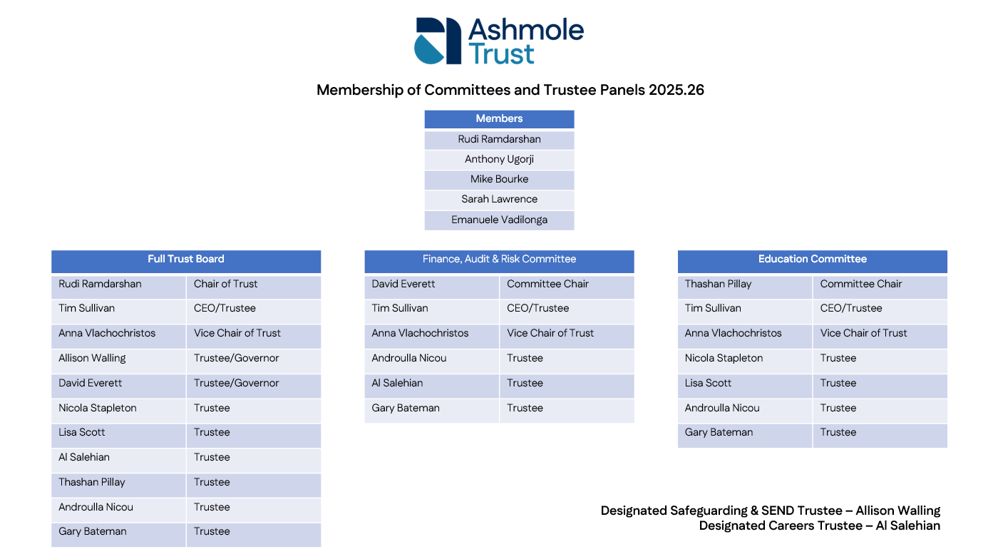 Ashmole Trust Membership of Committees & Trustee Panels 2025.26